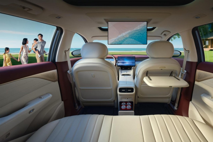 在其它配置上,你会发现东风风神L8还配备了后排吸顶屏幕,以及后排右侧专属的航空小桌板,这些舒适性配置也能让后排的乘客感到被尊重。不仅如此,东风风神L8还配备了后排冷暖箱,搭配上限时免费赠送的19扬声器音响,这五款配置也就组成了“豪车五件套”,所以这也是为什么要说不止“冰箱彩电大沙发”的原因。而且从实际体验来讲,因为东风风神L8的扬声器布局足够广泛,所以车内所呈现出来的音质更加立体,即便是坐在后排,同样也有“音乐厅”一般的体验感。
